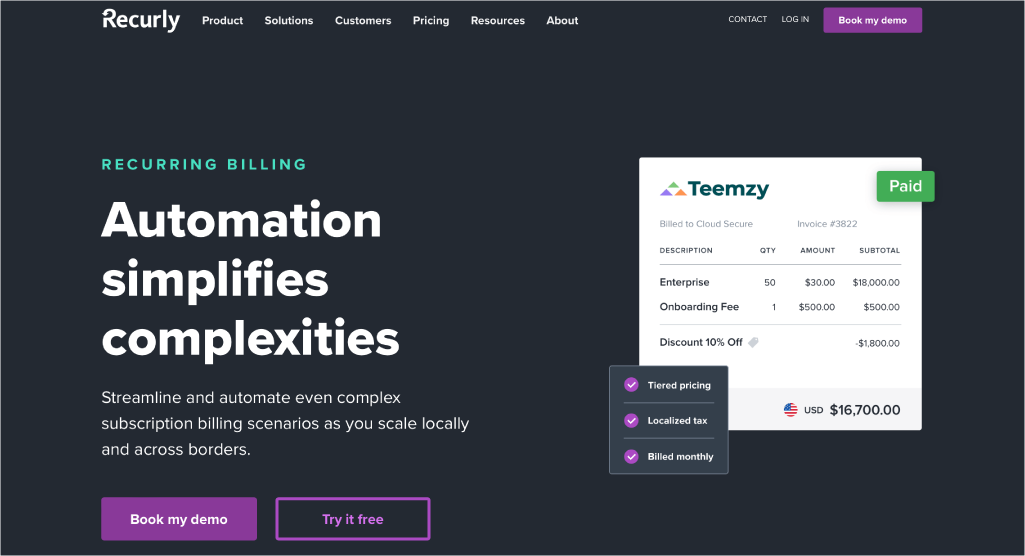 - Automated and configurable dunning, which includes scheduled reminders and automated recollection retries to customers who haven’t made their payments, to streamline the collection process.
