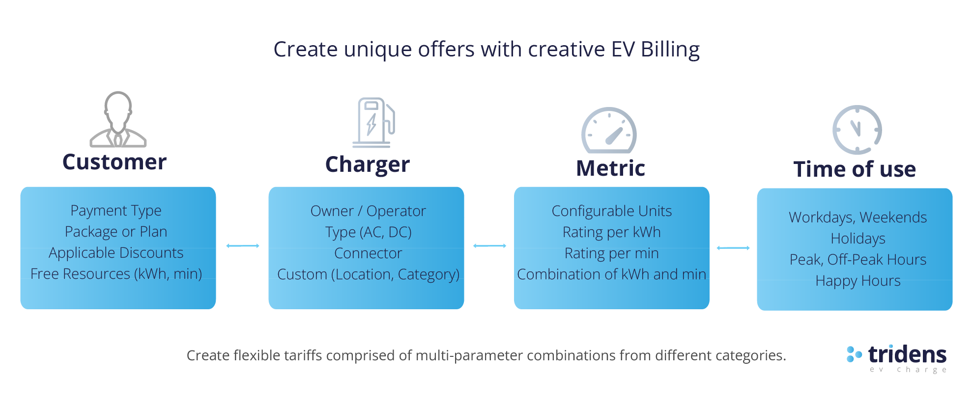 All the shown examples of pricing and EV Charging billing (and more) are already implemented and running in Tridens EV Charge.
