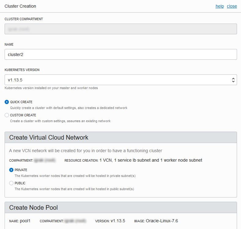 Now you have to prepare your Kubernetes cluster in Oracle Cloud. Open main menu -> Developer Services -> Container Clusters (OKE). Click on Create cluster and fill out the form to create a new cluster.