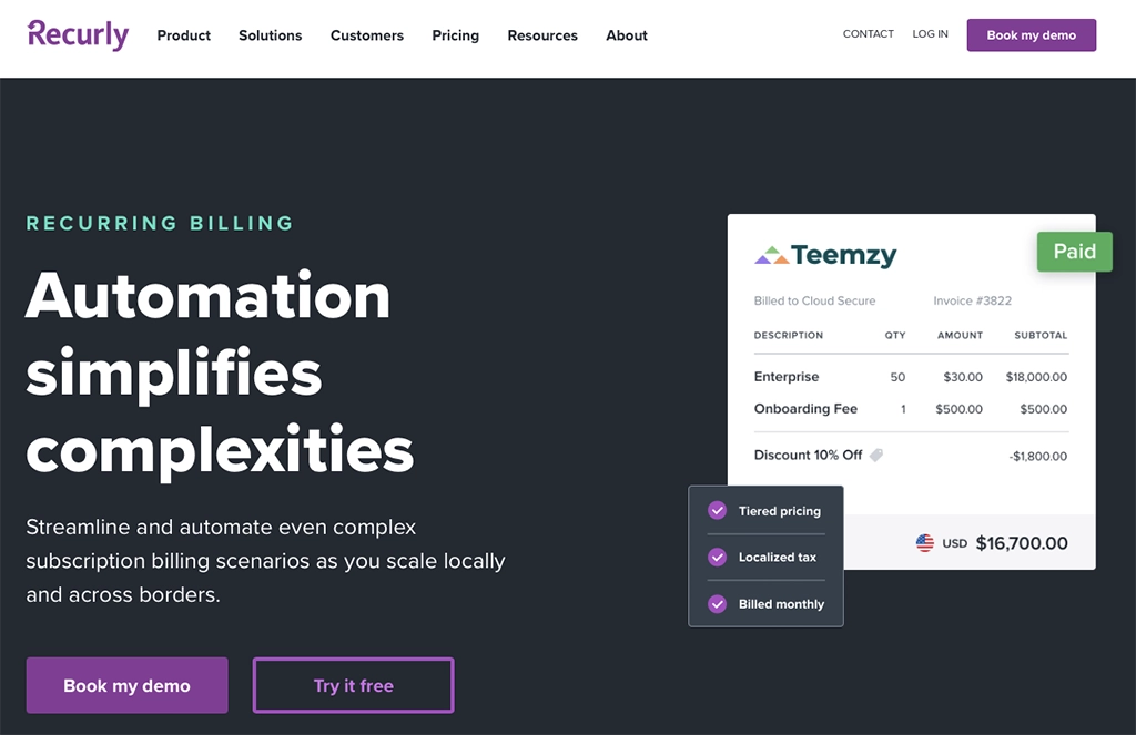 Recurly includes a ton of advanced personalization features, which makes it one of the most flexible recurring billing solutions on the market.